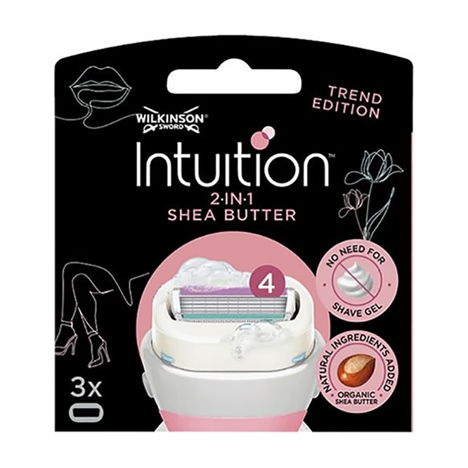 Die 3er-Packung mit Wilkinson Sword Intuition Klingen ist für die Anwendung mit kompatiblen Intuition Griffen konzipiert. Die Gleitstreifen sind mit feuchtigkeitsspendenden Inhaltsstoffen angereichert, die während der Rasur für eine zusätzliche Pflege sorgen. Diese Klingen garantieren eine exzellente Rasurqualität und sind daher für regelmäßigen Einsatz oder als Teil eines Sortiments in Verkaufsstellen ideal.